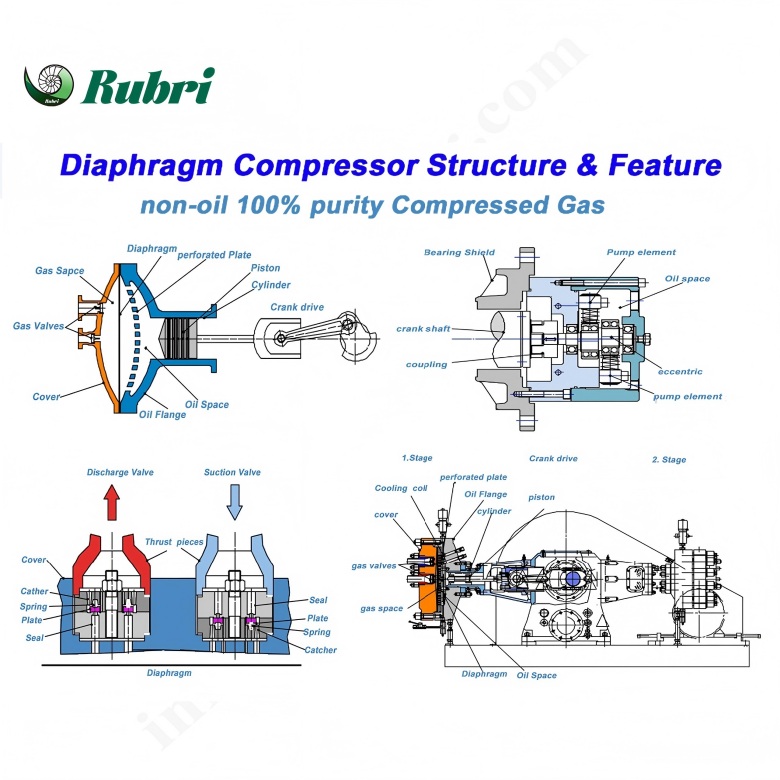 The diaphragm compressor has the characteristics of high single stage compression ratio,good sealing performance,compressed gas is not polluted by lubricating oil and other solid substances,so it is widely used in the food industry,petroleum industry,chemical industry,electronics industry,medical,scientific research and other fields.Specific uses include:flammable,oxidizing,toxic and radioactive gases,gas cylinder filing,gas mixing and agitating system,Filling and unloading of gas conveying and piping vehicles,chemical and petrochemical gas treatment systems,gases used in the manufacture of electronics,gases,semiconductors and optical fibers,one-stop gas generation system for pressurization and gas